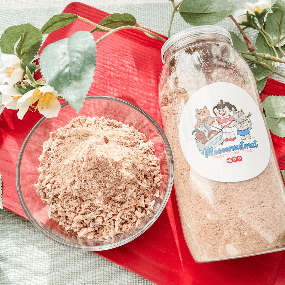 喵乜乜 Meowmatmat 的拌飯鬆鬆凍乾系列,精選六種高品質原材料,經過先進凍乾技術完整保留營養與新鮮風味,給予您的寵物最天然的營養補充,適合作為拌飯、零食或日常獎勵。