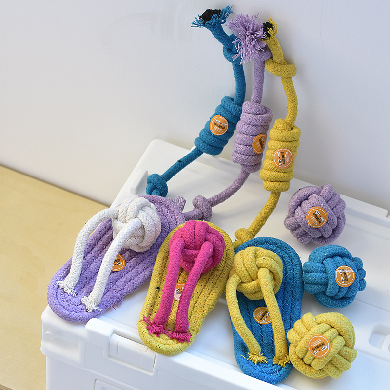撞色寵物玩具 繩結球